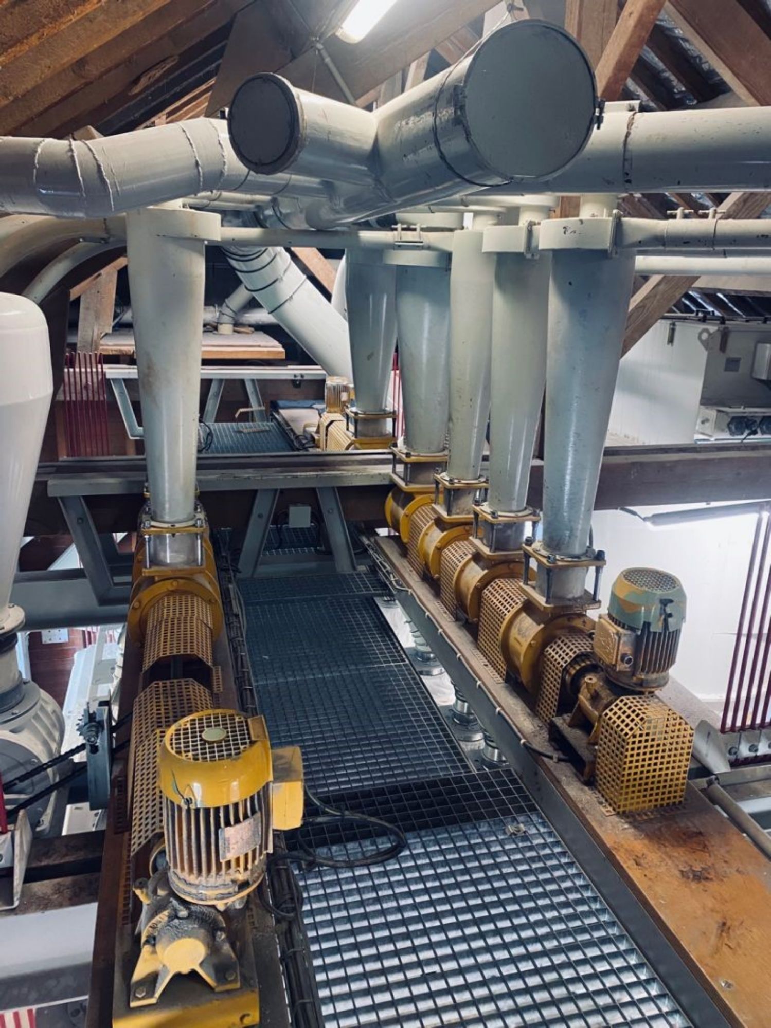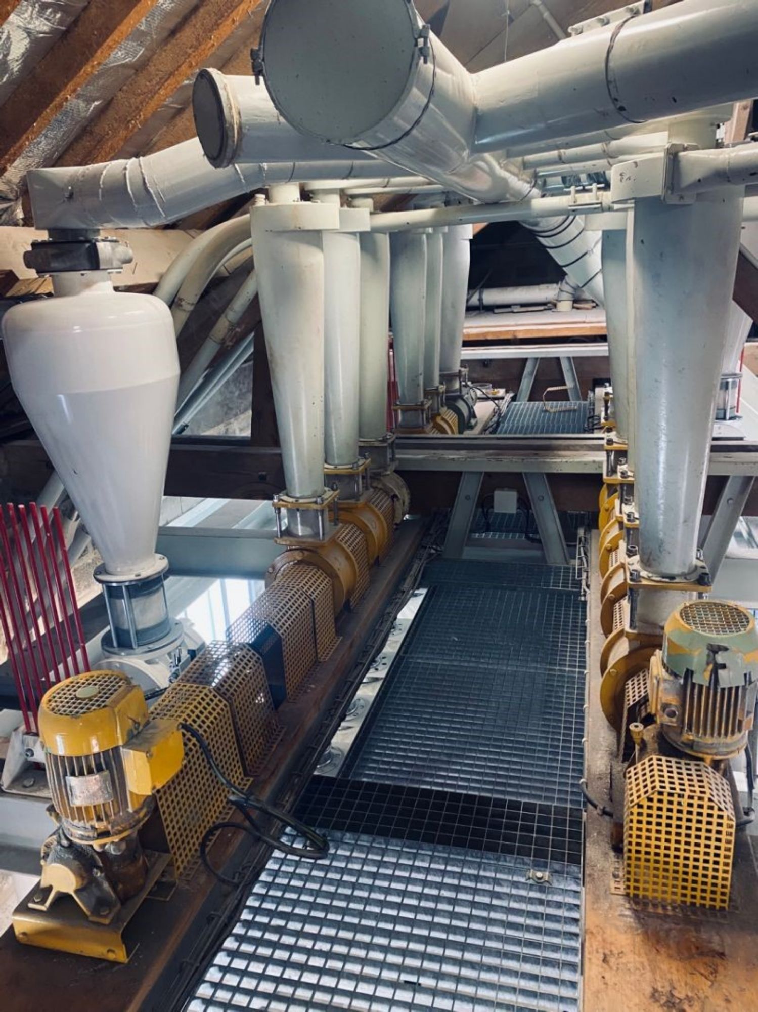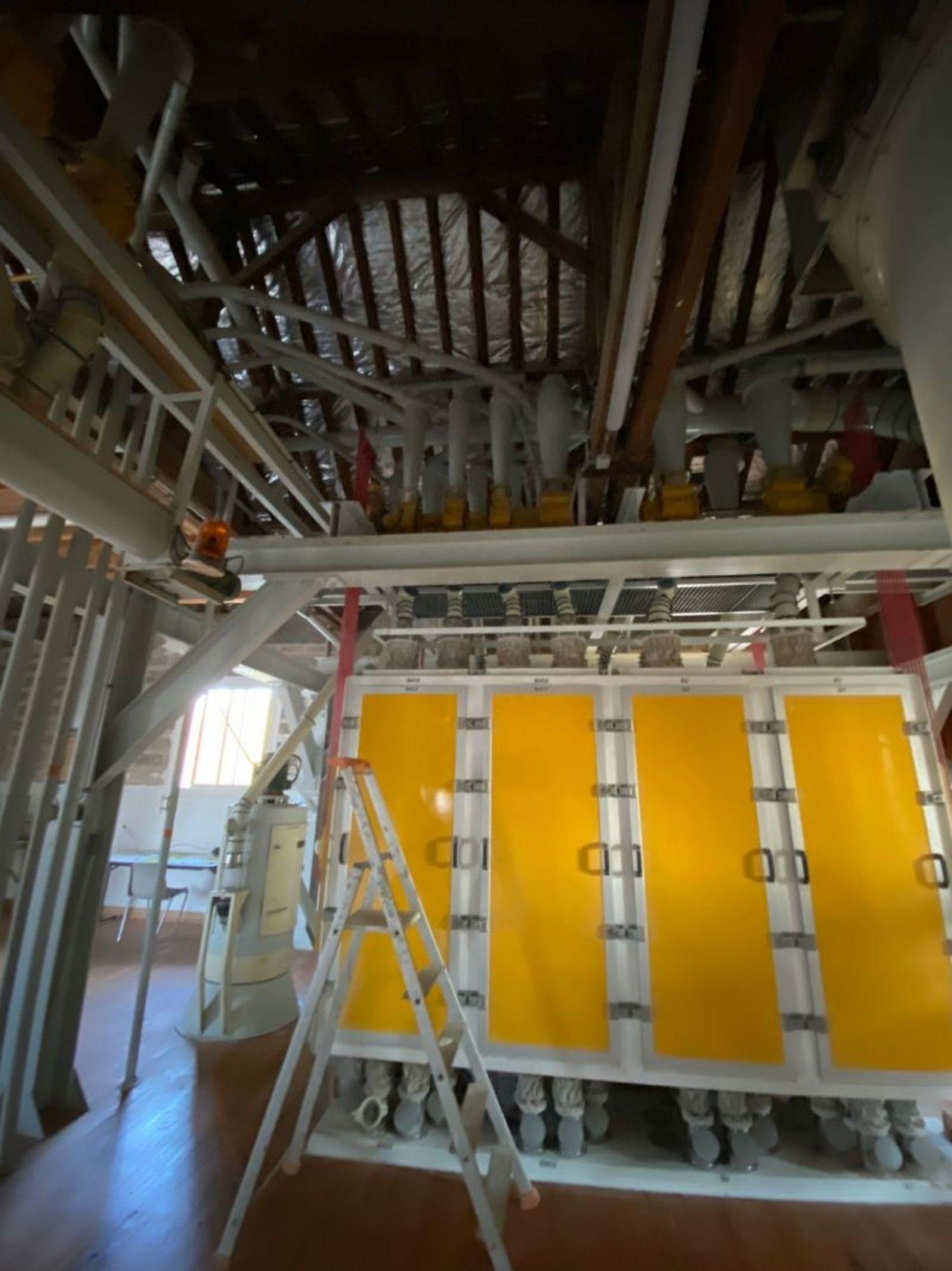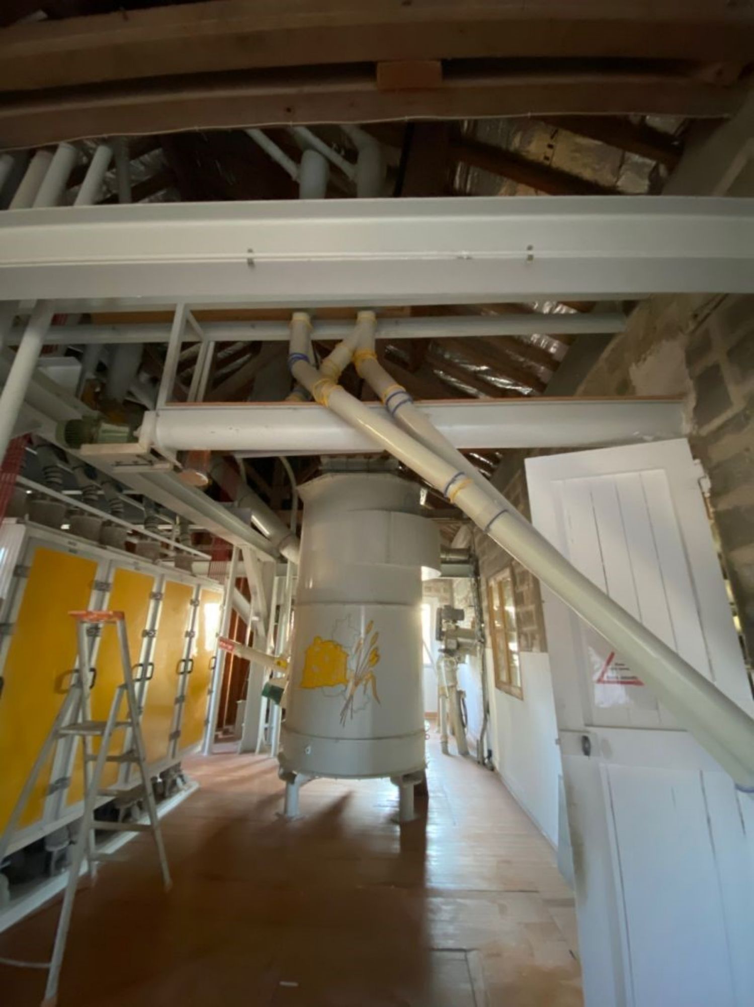 Installation et mise en route de meules à farine débit 3,5 tonnes heures dans un moulin sur la Marne